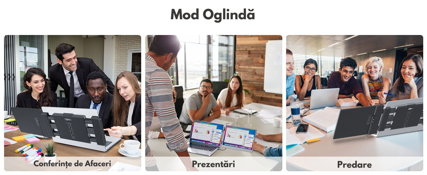 - Monitor cu moduri multiple: Extins, Oglinda, Portret