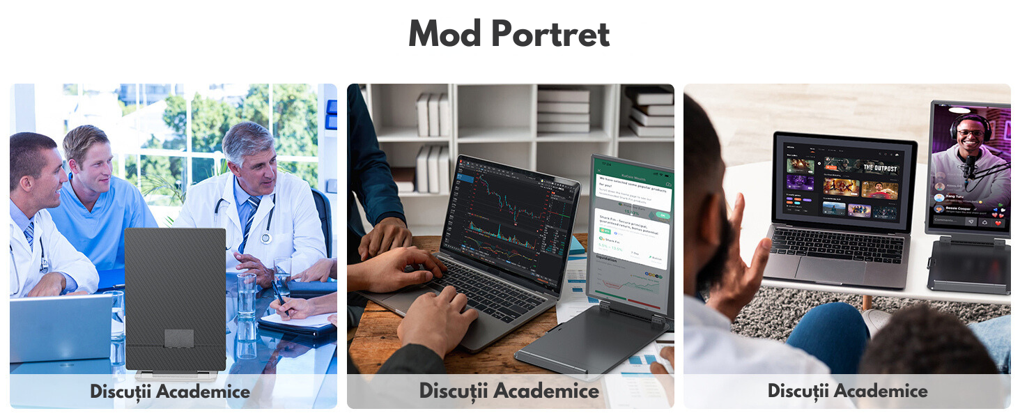 - Mod Portret: Optimizat pentru analiza bursiera, citirea documentelor sau divertismentul acasa.