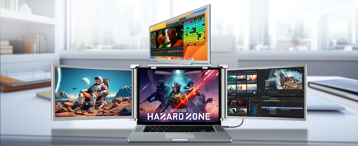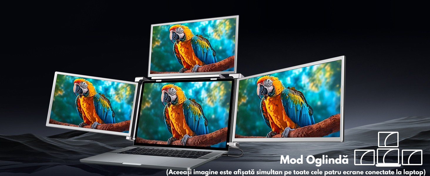 Monitor Extensibil si Portabil pentru laptop, QOVA®, Quad Screen de 14 inch, 3 Ecrane IPS - Full HD 1080p pliabile Monitor Extensibil si Portabil pentru laptop, QOVA®, Quad Screen de 14 inch, 3 Ecrane IPS - Full HD 1080p pliabile