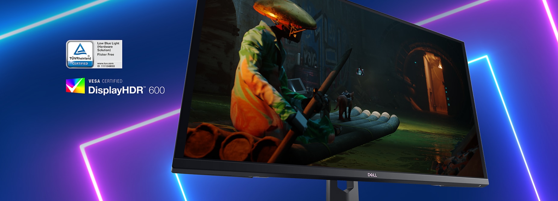 VESA DisplayHDR™ 600 si o acoperire larga a culorilor DCI-P3 95% ofera jucatorilor o grafica cu adevarat vibranta si realista. Precalibrarea Delta E mai mica de 2 din fabrica va ofera culori instantaneu precise din momentul in care scoateti monitorul din cutie. ComfortView Plus, certificat de TUV, reduce emisiile nocive de lumina albastra, totul fara a sacrifica acuratetea culorilor sau claritatea vizuala.