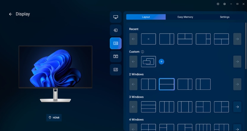 Easy Arrange imparte aplicatiile pe ecrane cu partitii prestabilite si personalizeaza pana la cinci ferestre, imbunatatind multitasking-ul. Easy Arrange Memory salveaza si restabileste profilurile aplicatiilor manual, programat sau la pornire.