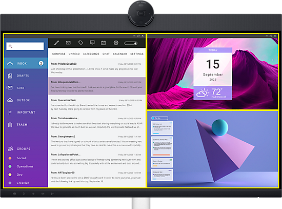 Tare si clar: Colaborati ca si cum ati fi acolo cu microfoane incorporate, cu anulare dubla a ecoului si difuzoare duble de 5 W, pozitionate strategic in partea de sus a monitorului pentru o experienta audio captivanta.
