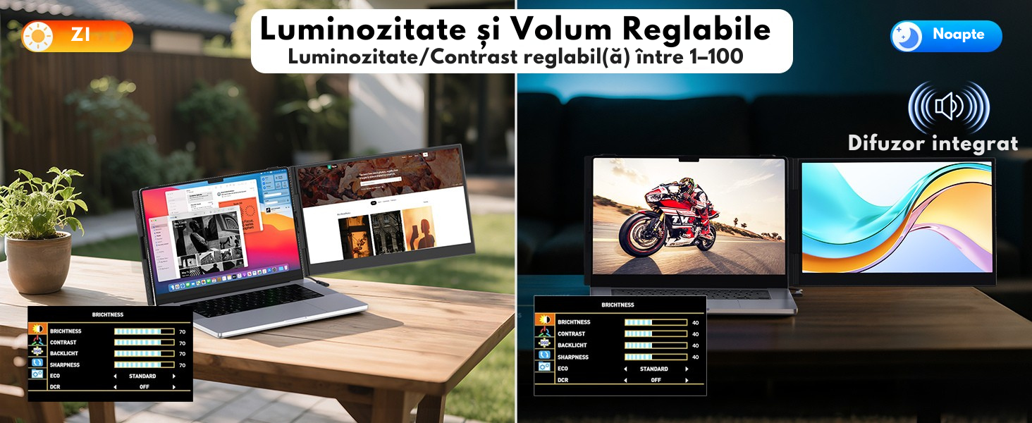 Monitor portabil dual extensibil 14.2” Full HD IPS – culori vibrante si unghiuri largi de vizualizare.