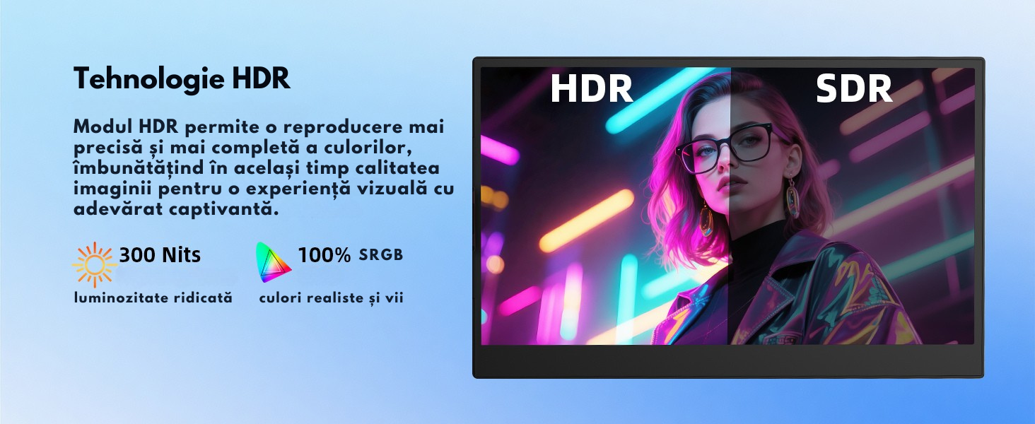 Luminozitate 300 Nits si contrast 1000:1 – claritate excelenta chiar si in lumina ambientala puternica.