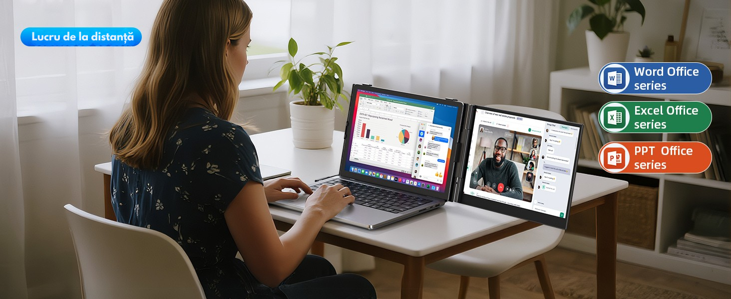 Transforma-ti laptopul intr-o statie de lucru profesionala oriunde te afli! Monitorul portabil dual extensibil de 14.2 inch este solutia perfecta pentru productivitate sporita, multitasking eficient si confort vizual in orice mediu – de la birou si calatorii de afaceri, pana la gaming si divertisment.