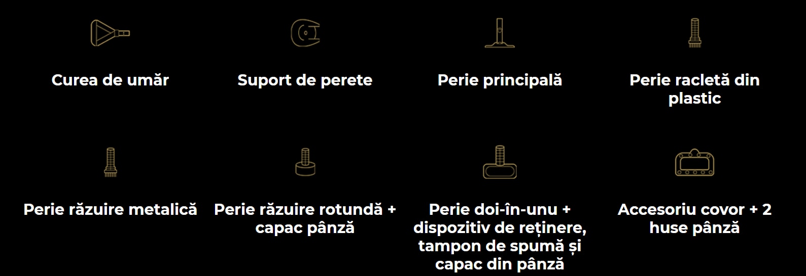 Prin schimbarea diverselor perii, puteti curata cu usurinta murdaria incapatanata din intreaga casa. Podele si covoare, pereti, usi, ferestre, blaturi de masa, perdele sau chiar pantofi, haine si jucarii – orice suprafata, care permite 110°C.