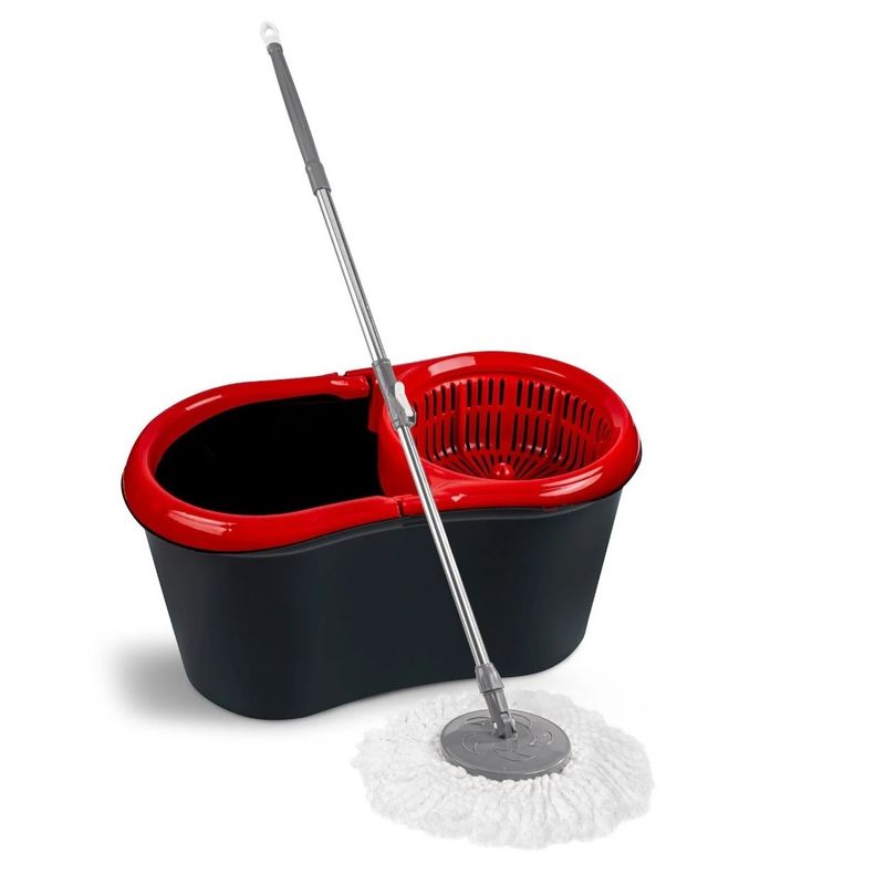 Mop rotativ Pratico – Setul contine mopul din fire de microfibra cu diametrul de 35 cm cu sistem de stoarcere; maner telescopic cu inaltimea de 120 cm si galeata ovala cu toarta, capacitate de 14 L cu sistemul de centrifugare incorporat. Dimensiune: 46x29x25 cm Materiale: 100% Microfibra , metal , plastic