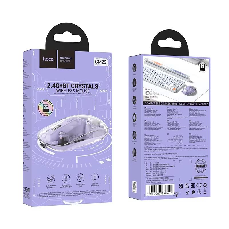 Mouse fara Fir, Hoco GM29 Cristal, Conectare cu USB, BT 5.0 si 2.4Ghz transparent Mouse fara Fir, Hoco GM29 Cristal, Conectare cu USB, BT 5.0 si 2.4Ghz transparent