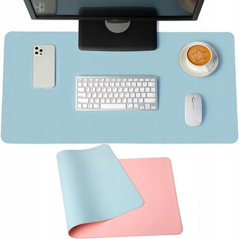 PC, gaming si accesoriiPeriferice PCMousepadMousepad PROtone XXL pentru protectie birou, din piele pu, cu doua fete Albastru/Roz, 90x45 cm