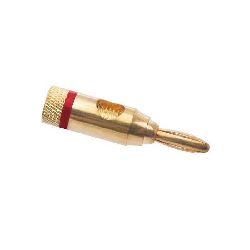Mufa banana aurita tata pentru cablu max 4mm inel rosu Mufa banana aurita tata pentru cablu max 4mm inel rosu