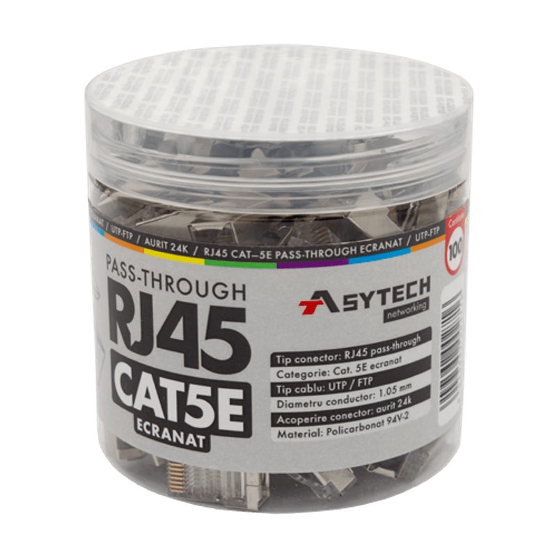 Mufa RJ-45 FTP Cat.5e EZ Passthrough, ecranata (100 buc) RJ45M-CAT5-EZ-JAR Mufa RJ-45 FTP Cat.5e EZ Passthrough, ecranata (100 buc) RJ45M-CAT5-EZ-JAR