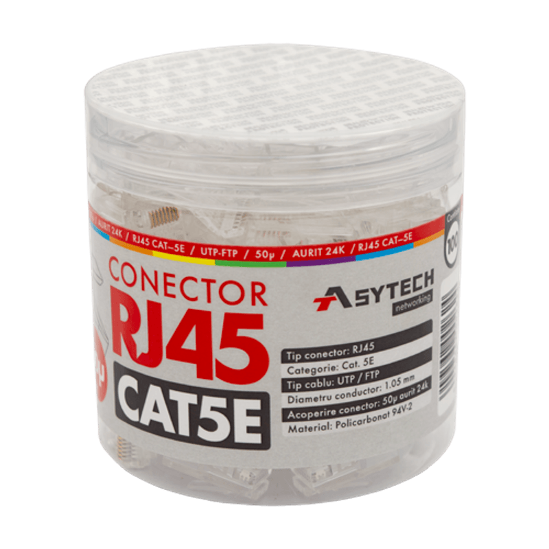 Mufa RJ-45 UTP Cat.5e, 50µ (100 buc) RJ45-CAT5E-50U-JAR Mufa RJ-45 UTP Cat.5e, 50µ (100 buc) RJ45-CAT5E-50U-JAR