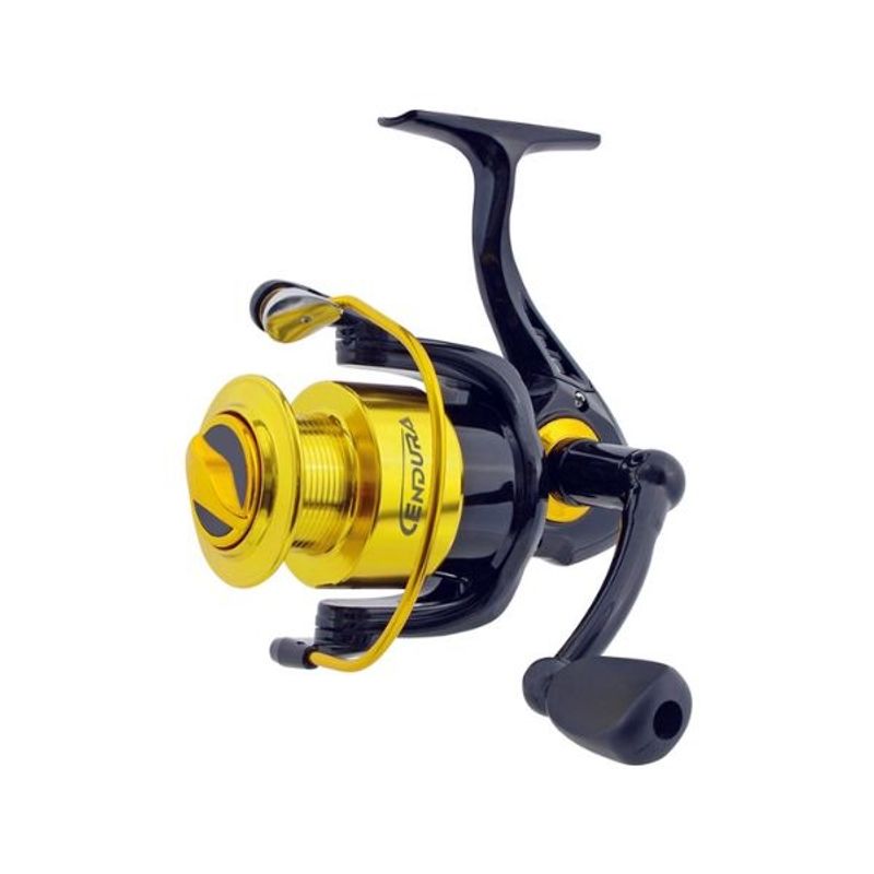 Mulineta pentru pescuit Konger Endura Gold 60FD, 2 rulmenti, Tambur din aluminiu cu capacitate 0.45 mm/140 m, Frana frontala micrometrica, Antirevers, Calitate premium, Negru/Auriu
