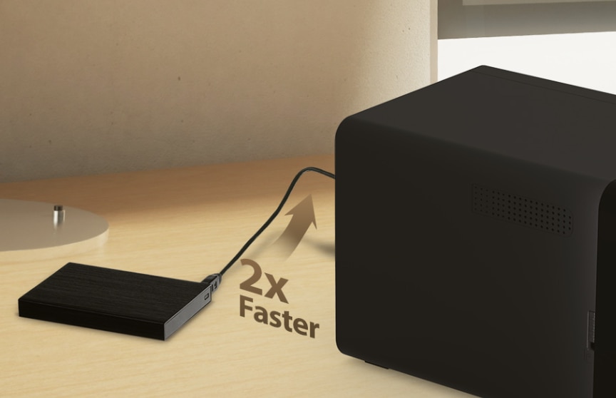 TS-464 ofera doua porturi USB 3.2 Gen 2 de 10Gbps pentru un transfer de fisiere mai rapid catre/de la dispozitive USB 3.2 Gen 2. Butonul One Touch Copy va permite, de asemenea, sa efectuati o copie de rezerva a continutului dispozitivelor USB pe TS-464 cu o singura apasare de buton.