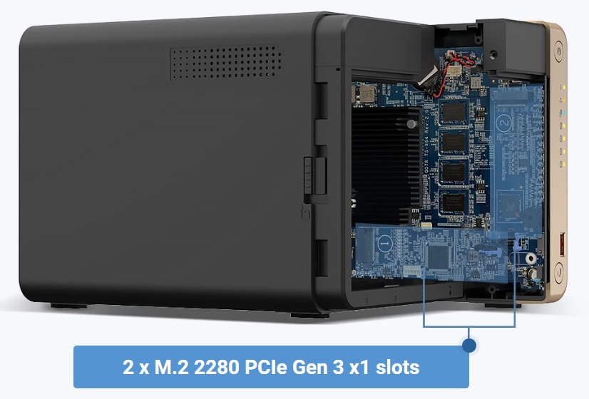TS-464 are doua sloturi M.2 PCIe Gen 3 pentru instalarea de SSD NVMe