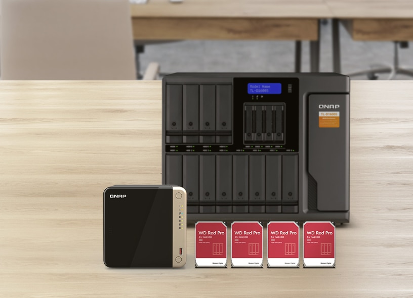 TS-464 suporta o capacitate de stocare de pana la 66 TB prin instalarea a patru hard disk-uri de 22 TB de 3,5 inchi in RAID 5. Prin conectarea unei unitati de expansiune a spatiului de stocare QNAP TL-D1600S, puteti adauga inca douasprezece hard disk-uri la TS-464 pentru a obtine un spatiu de stocare de pana la 280 TB pentru a satisface cerintele de stocare in crestere.