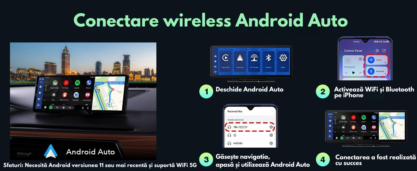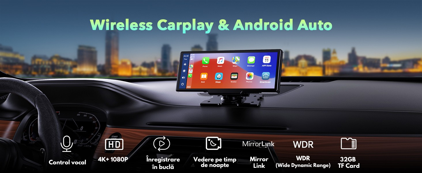 ✅ Conectivitate Wireless CarPlay & Android Auto