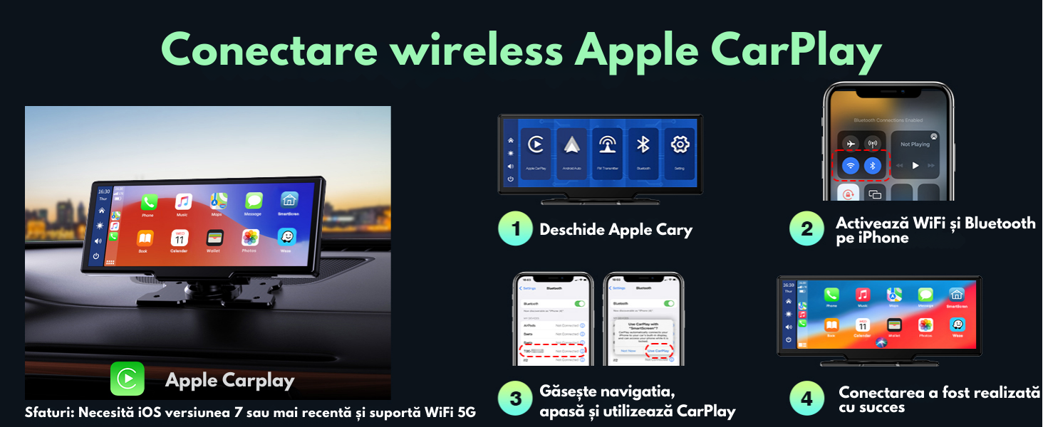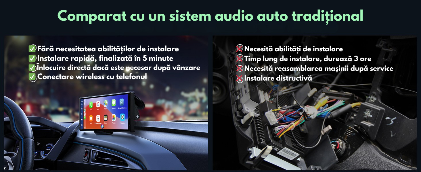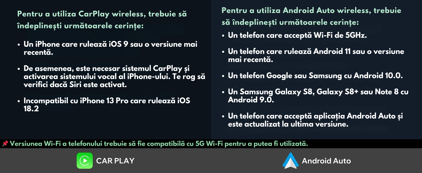 ✔️ Acces la CarPlay si Android Auto fara cabluri