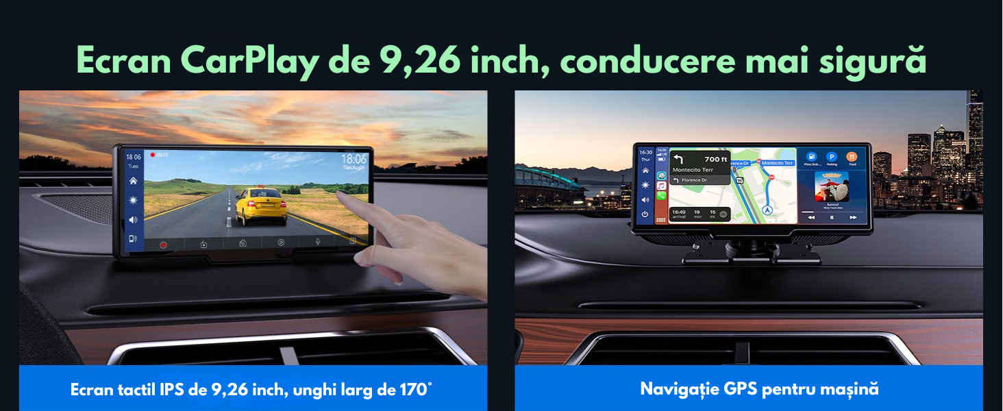 🚗 Navigatie GPS inteligenta in timp real: Prin CarPlay sau Android Auto, se conecteaza la smartphone-ul tau, oferindu-ti un sistem inteligent de navigatie auto in timp real, fara a fi nevoie de actualizari frecvente ale hartilor sau costuri suplimentare.