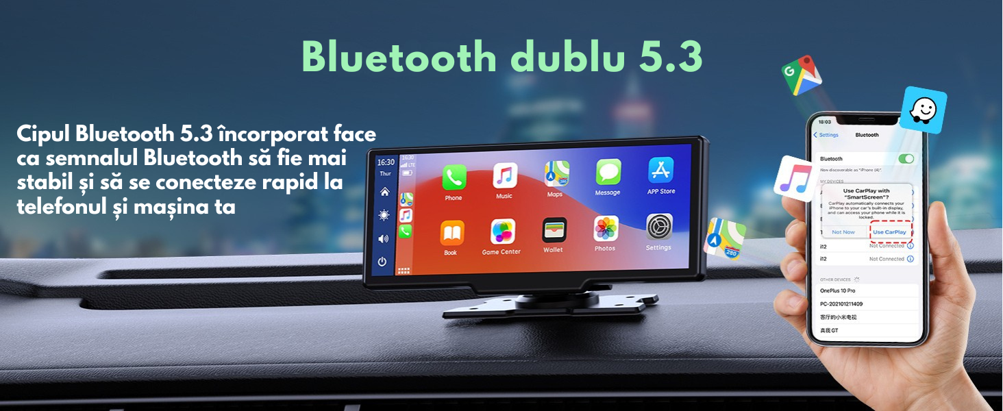 ✔️ Bluetooth 5.3 – Conecteaza-te direct la sistemul audio al masinii.