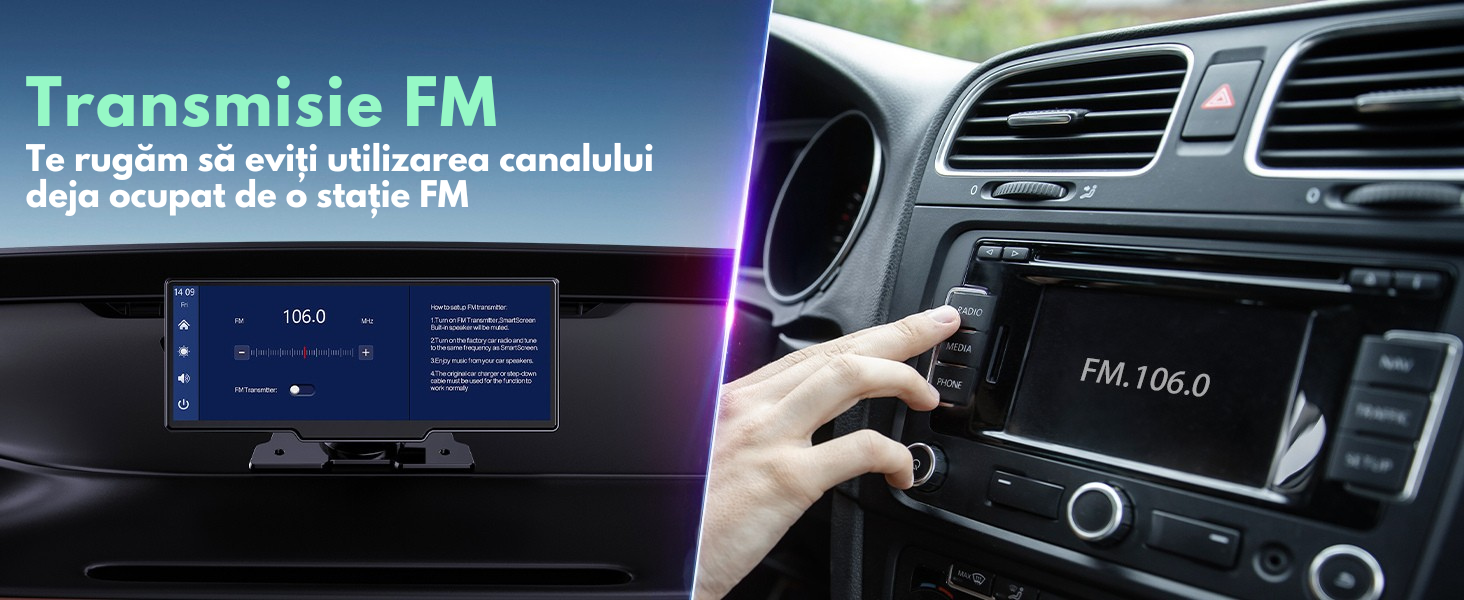 ✔️ Transmisie FM – Emite pe frecventa radioului masinii pentru integrare rapida.