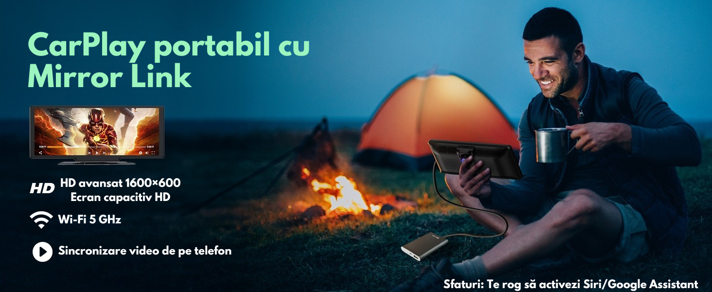 🚗 Functie de oglindire ecran Android/iOS imbunatatita: Folosind Apple AirPlay si Android Cast, iti poti conecta smartphone-ul la ecranul CarPlay si reda videoclipuri de pe YouTube, TikTok etc. Acest ecran portabil Apple CarPlay are o rezolutie de 1600*600 si suporta videoclipuri 1080P. Chiar si atunci cand esti in aer liber sau in calatorii, poti bucura de o experienta video pe ecran mare, de inalta definitie. 🤷♀️ (Sfaturi: Nu accepta Netflix.)