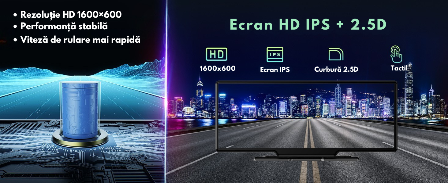 ✅ Ecran tactil IPS HD de 10.26 inch cu rezolutie 1600x600