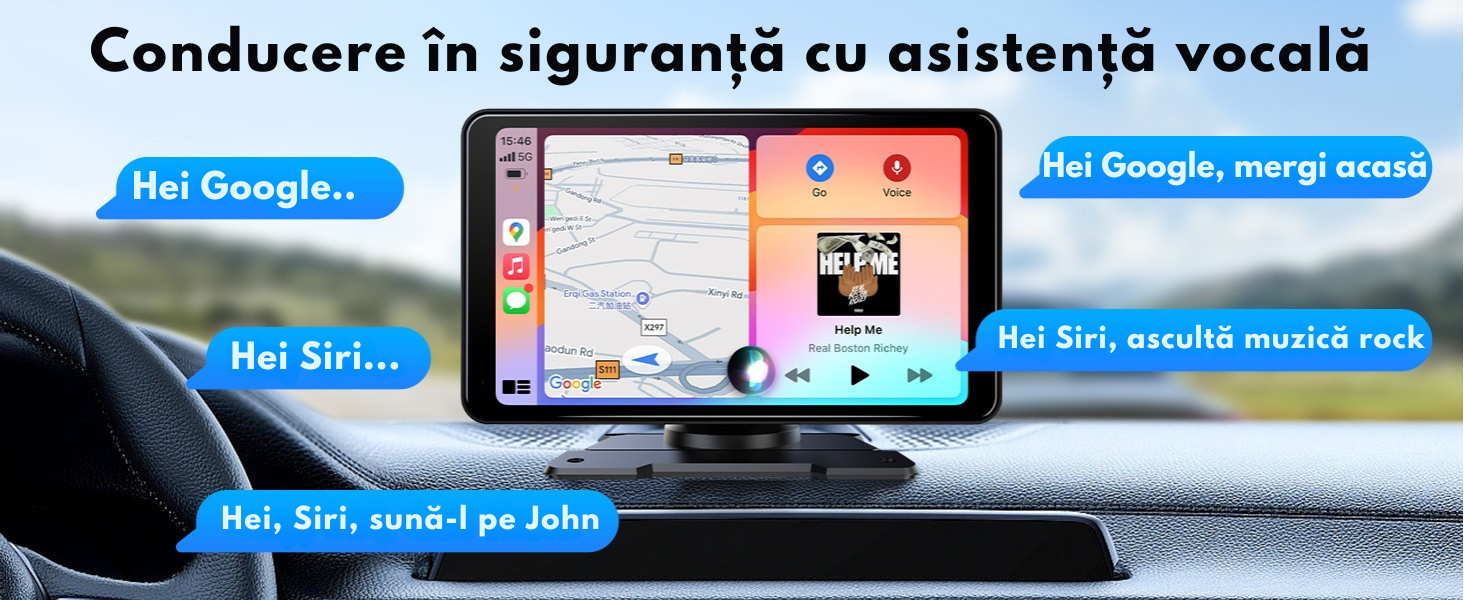 【Control vocal inteligent cu Siri si Google Assistant】 – Acest ecran CarPlay este echipat cu cea mai recenta tehnologie de control vocal. Conecteaza-l la smartphone-ul tau si acceseaza navigatia, apelurile, e-mailurile, notificarile, muzica si multe altele prin Siri sau Google Assistant, sporind siguranta si confortul la volan si facand condusul mai comod si placut.