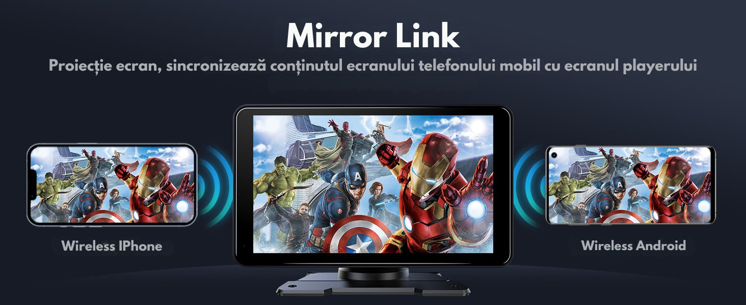 📌 MirrorLink pentru iPhone si Android – Proiecteaza ecranul telefonului pe display-ul auto pentru a viziona continut media.