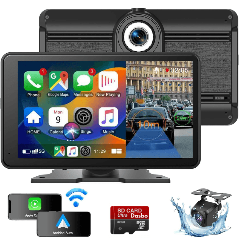 Navigatie Auto Multimedia Universarala Dasbo®, Display 7 inch cu Touch screen, Camera Inregistrare fata 2k + spate 1080P inclusa, wireless Apple Carplay si Android Auto, Bluetooth, Radio FM, Asistenta Vocala, AUX,, Suport Reglabil, Card Micro-SD 32 GB