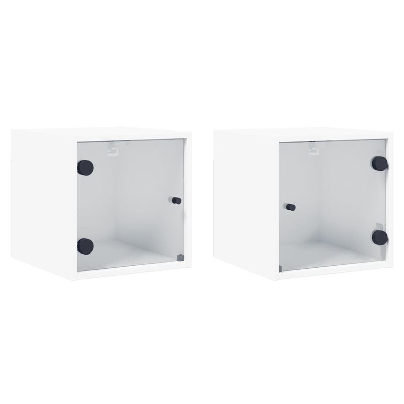 Noptiere cu usi din sticla, 2 buc., alb, 35x37x35 cm Noptiere cu usi din sticla, 2 buc., alb, 35x37x35 cm