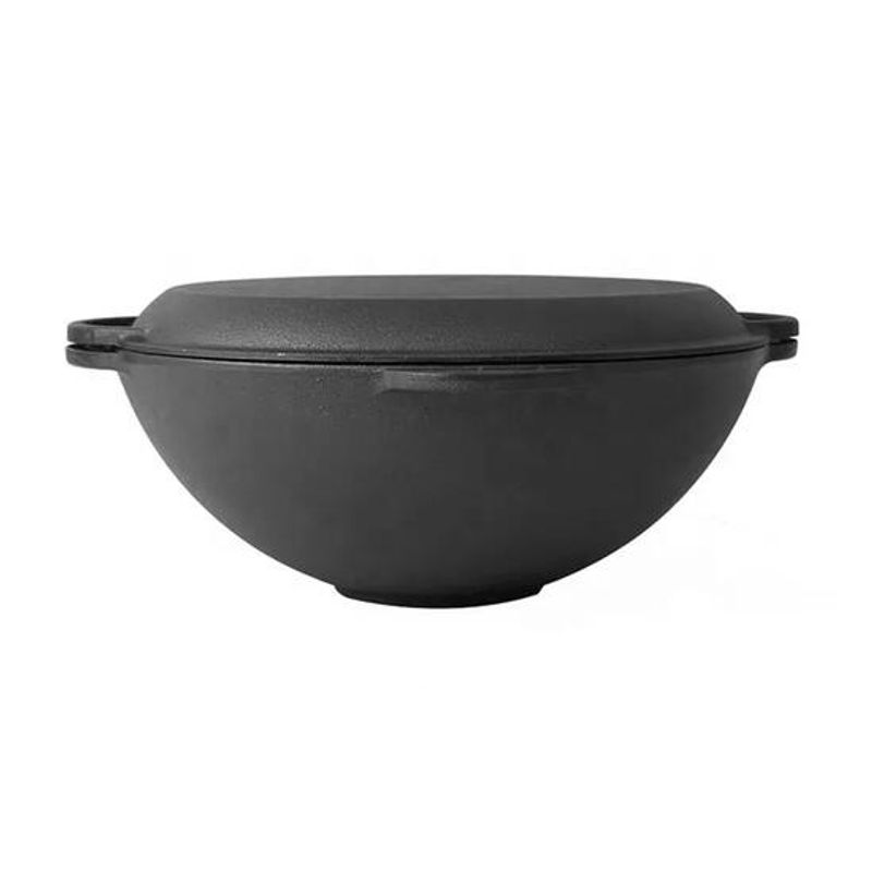 Oala de fonta tip wok, cu capac, 3 in 1, 37x18 cm, Perfect Home Oala de fonta tip wok, cu capac, 3 in 1, 37x18 cm, Perfect Home