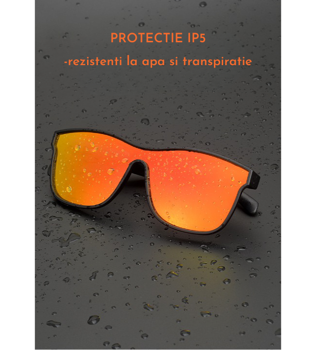 Un alt aspect important al ochelarilor de soare inteligenti este rezistenta la apa si transpiratie, ramele fiind sigilate perfect pe ambele parti, evitand astfel scurgerile de transpiratie sau intrarea picaturilor de ploaie in interior. Acest lucru confera utilizatorului confort si siguranta chiar si in situatii de activitati fizice intense sau intemperii.