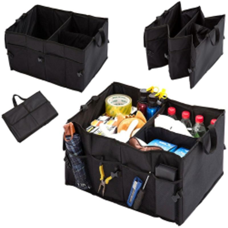 Organizator auto, 3 compartimente, poliester, negru, 53x38x25.5 cm Organizator auto, 3 compartimente, poliester, negru, 53x38x25.5 cm