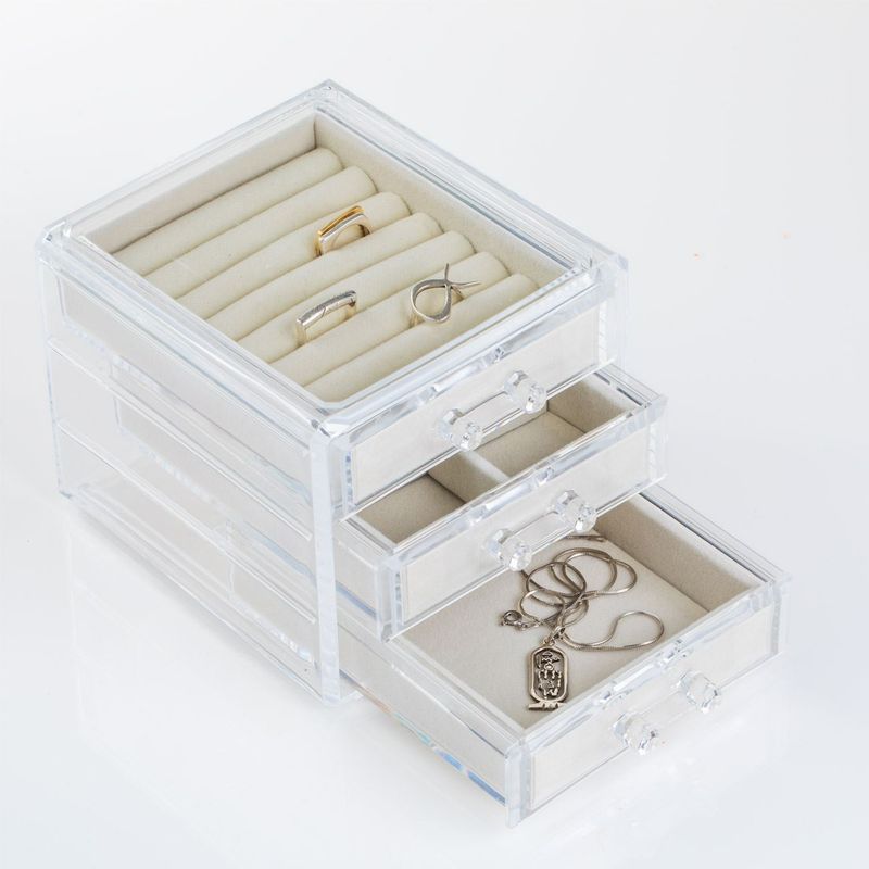 • Esti pregatita sa aduci o nota de eleganta si ordine colectiei tale de accesorii? Suportul Organizator Acrilic Transparent cu 3 Compartimente Ecru Velvet este solutia perfecta.