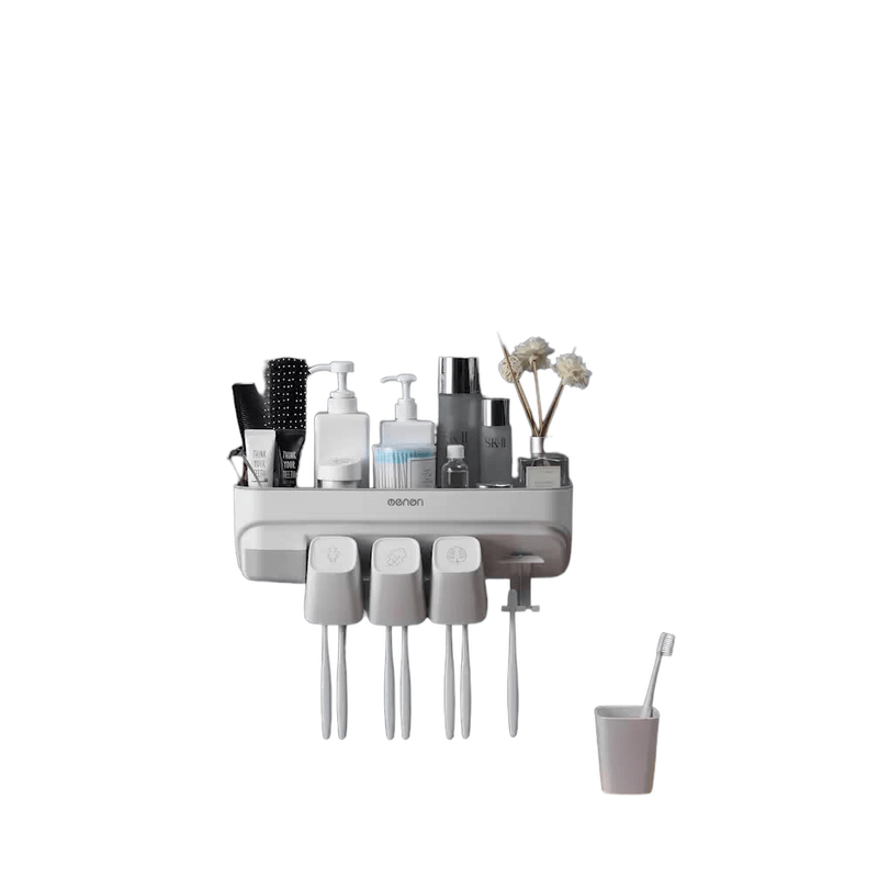 - Depozitare pentru 4 Pahare si 8 Periute de Dinti: Organizatorul este echipat cu 4 pahare si 8 compartimente special concepute pentru periute de dinti. Aceasta ofera suficient spatiu pentru intreaga familie si permite o organizare eficienta a obiectelor de igiena orala.