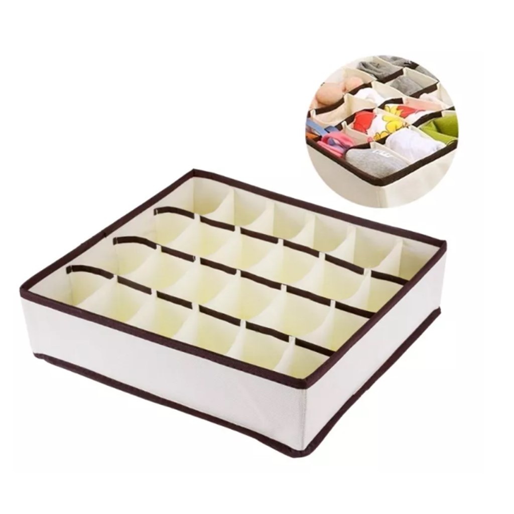 Organizator sertar pentru sosete si accesorii, 24 compartimente, 32 x 32 cm, bej Organizator sertar pentru sosete si accesorii, 24 compartimente, 32 x 32 cm, bej