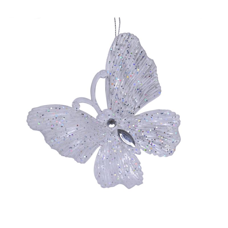 Ornament brad Fluture glitter, 10 cm, plastic, roz blush Ornament brad Fluture glitter, 10 cm, plastic, roz blush