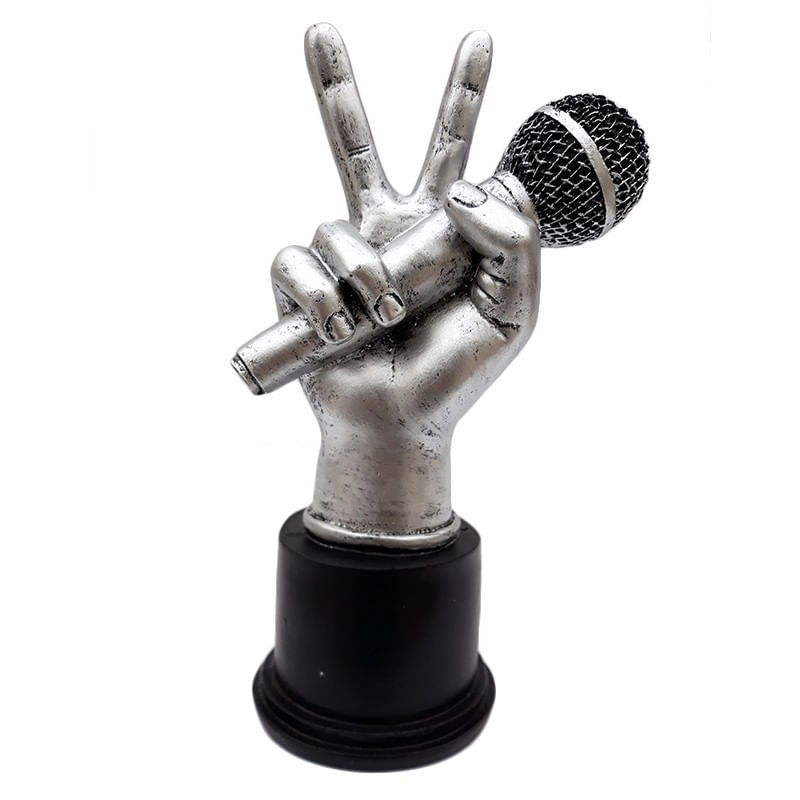 Ornament in forma de mana cu microfon, aratand semnul victoriei, Gri, 620E Ornament in forma de mana cu microfon, aratand semnul victoriei, Gri, 620E