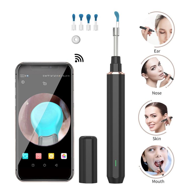 Otoscop wireless inteligent cu camera si lumina pentru copii si adulti, PetraBliss, negru Otoscop wireless inteligent cu camera si lumina pentru copii si adulti, PetraBliss, negru