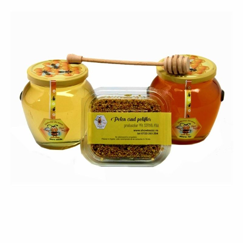 Pachet 1 Borcan miere salcam + 1 Borcan miere tei + 1 caserola polen , Show Bazzz