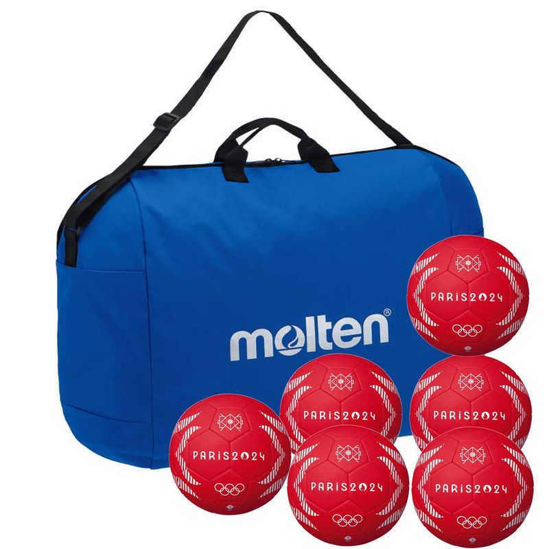 Pachet 6 mingi handbal Molten A5000 – Minge Oficiala JO Paris 2024, Marime 3, IHF Approved + Geanta transport
