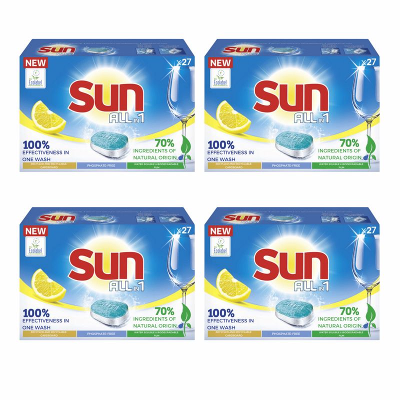 Detergent de vase pentru masina de spalat Sun All in One Lemon, 24 tablete