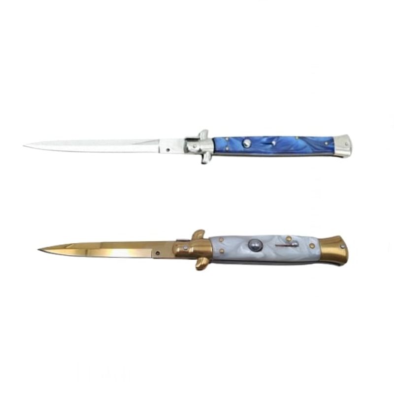Pachet doua bricege automate, lama stiletto, 23 cm, albastru/auriu Pachet doua bricege automate, lama stiletto, 23 cm, albastru/auriu