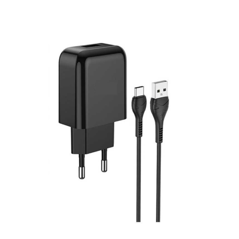 Pachet incarcator retea si cablu USB la USB-C, cu suport Fast charge 2.1A, Negru Pachet incarcator retea si cablu USB la USB-C, cu suport Fast charge 2.1A, Negru