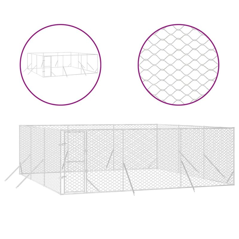 Padoc de exterior pentru caini argintiu 6x6x2 m otel galvanizat Padoc de exterior pentru caini argintiu 6x6x2 m otel galvanizat