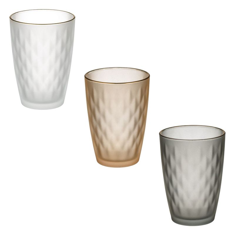 Pahar sticla, model luxury, set 3 buc, textura mata, multicolor, margine aurie, capacitate 400 ml Pahar sticla, model luxury, set 3 buc, textura mata, multicolor, margine aurie, capacitate 400 ml