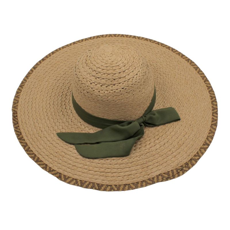 Palarie plaja dama bej cu funda verde Palarie plaja dama bej cu funda verde