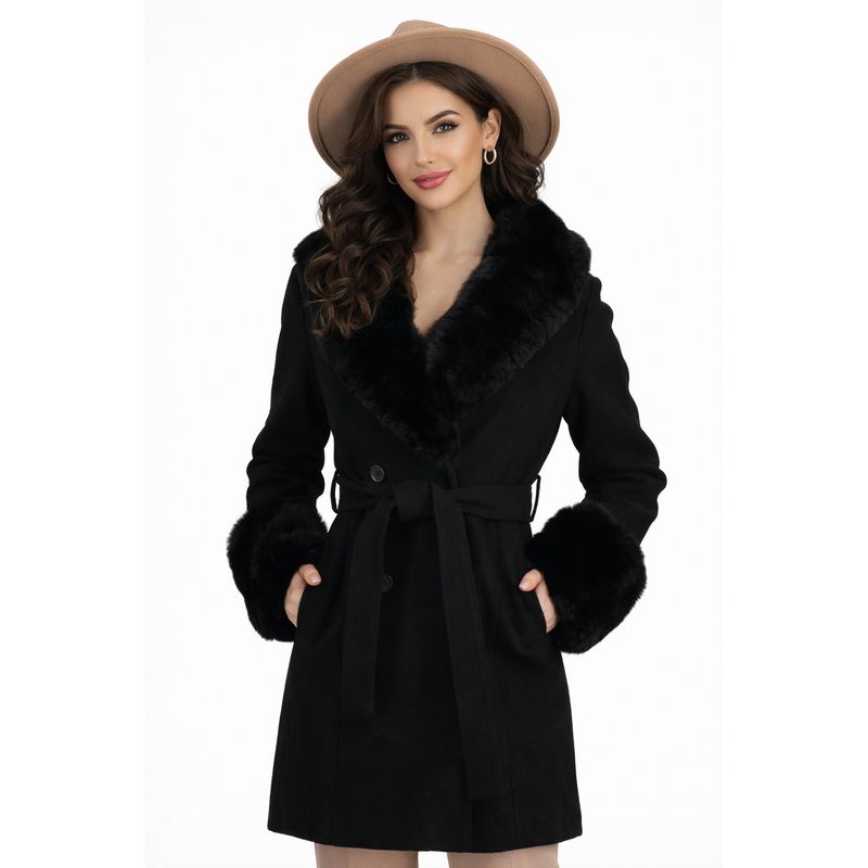 Palton negru din stofa cu blana ecologica detasabila Palton negru din stofa cu blana ecologica detasabila S INTL Negru