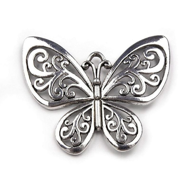Pandantiv decorativ metalic 50 x 56 mm Fluture platinum Pandantiv decorativ metalic 50 x 56 mm Fluture platinum